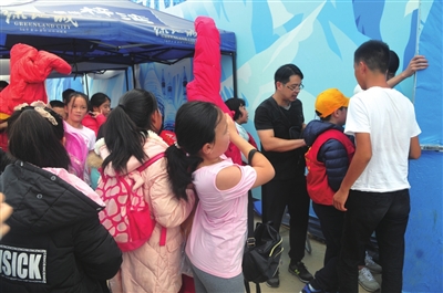 “我们来晚了,抱歉。”昨日上午,小记者们刚刚到达冰雪乐园体验现场,小记者卢畅在妈妈的带领下,匆匆赶过来。