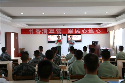 7月25日,在“八一”建军节来临之际,武警咸宁支队某中队联合咸宁市图书馆、中国人民解放军某部开展“八一”建军节“书香满军营 军民心连心”领读者进军营文化活动,与省长江读书节的领读者们共同庆祝中国人民解放军建军91周年。 (记者 杜培清 通讯员徐芳 卢旭东)