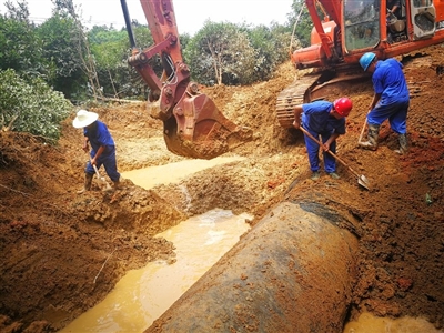 事发后,该公司负责人迅速赶赴现场了解情况,迅速启动应急预案,组织抢修专班进行抢修。关闭闸阀、备材料、强排水……上午9点半,抢修组紧张有序地实施供水主管的抢修工作。