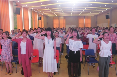 “我们是一名光荣的幼儿教师,肩上担负着民族的希望,心中装着祖国的未来,手中捧着孩子的明天。作为一名幼师,我们庄严宣誓:对待幼儿充满爱心,对到家长热情真心教育教学崭新静心……”特训营闭幕仪式上,在总经理陈帅的主持下,300名学员与颂大童心高管们一起进行了庄严的教师宣誓仪式,以此再次提醒与会人员不忘初心,牢记使命。