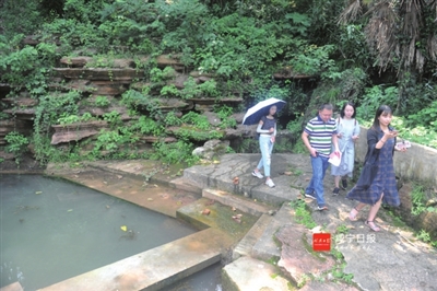 挂榜山下还有一个著名的景区——鸣水泉。鸣水泉是多层次、多类型的岩溶洞穴,具有350万年历史,有9个支洞3个出口68个景点,有3座小山、100亩水面的地下湖和地下水库闸门。葛洪炼丹洞可谓“楚天一绝”,中央大厅高达80米,宽200米,可同时容纳万人参观,步步即景。《咸宁市地名志》记载,挂榜山是东晋著名道教理论家、医药学家、化学家、文学家葛洪炼丹的地方。鸣水泉风景区集 “6个第一”于一体:楚天第一的万人溶洞,亚洲第一的地下水库,鄂南第一的洞降基地,华中第一的攀岩基地, 中国第一的桂花之乡,世界第一的天然卧佛。