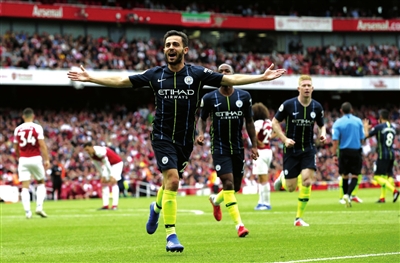 曼城前锋斯特林与世界杯的表现迥然相反,状态十分出色。他接门迪的传球从左至右沿禁区线横向连过两人后劲射破门如入无人之境,此时不过是开场第14分钟。此后,阿森纳虽然倾力反扑,奥巴梅扬和拉卡泽特都有威胁极大的射门,但与阿圭罗的单刀赴会相比,威胁要小得多。最终,还是门迪传中助攻,无人防守的贝尔纳多在第63分钟劲射破门,替曼城确立胜势。