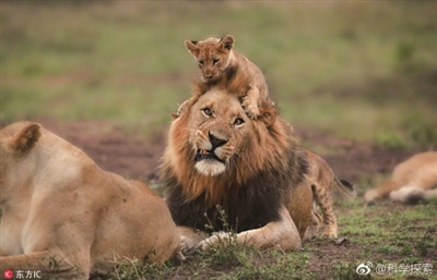 一头雄狮离开狮群数天后,回家受到了小狮崽的热情欢迎。顽皮的小狮子爬到了狮爸的背上,抓着爸爸的鬃毛“骑大马”。雄狮:我不要面子的咯。