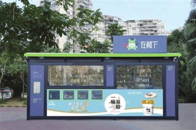 中午12时,在朝阳路南侧的华龙美树小区门口,一个绿色外形的“在楼下”智能货柜吸引了小区居民好奇的目光。