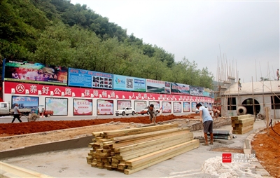 红色主题宣传牌已安装完毕,交通厕所和观景台已完成主体工程建设……8月23日,在S209省道咸通线党员示范路界水岭公路驿站建设现场,工人们正在有序施工。