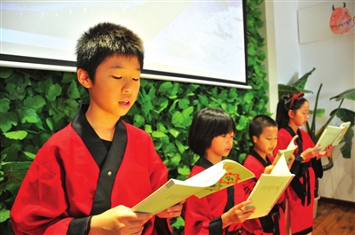“一切言动,都要安详,十差九错,只为慌张……”8月24日上午,记者在市新华书店二楼看到,一群阳光、自信、懂礼的小朋友正在老师的带领下,依次诵读了《小儿语》、《弟子规》、《论语》等国学经典。