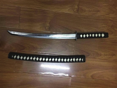 心有不甘的聂某跑回附近自家门店,拿出一把长约60公分未开锋的工艺刀(如图)回到现场,持刀追逐吕某兄弟。所幸,两人躲闪及时,成功逃脱,聂某随后离开了现场。