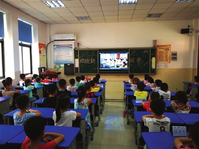 宽敞明亮的教室里,58个孩子端端正正地坐在各自的位置上,睁大一双双清澈明亮的眼睛,专心致志地看老师利用崭新的多媒体投影设备,为他们讲授开学的第一堂课。