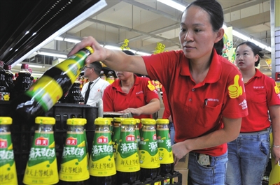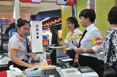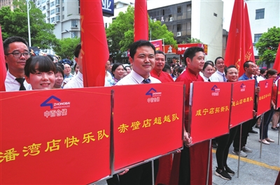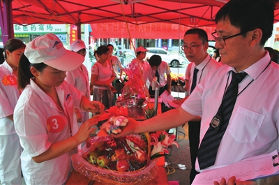 “请带上我们的明星产品,牵着你的女朋友的手,告别单身狗……”端头陈列比主题创意、价格标 识、比现场清理、比现场促销,来自咸安店的参赛选手刘淑梅幽默的讲解让全场大笑。