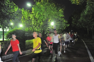 一个小时,2圈6公里,大家汗流浃背、气喘嘘嘘,但脸上却洋溢着大汗淋漓之后的舒畅。擦擦汗、喝口水,互相道别,今天的运动暂时结束。大家约定次日再来。简单的运动,既锻炼了身体,又放松了生活中的压力。