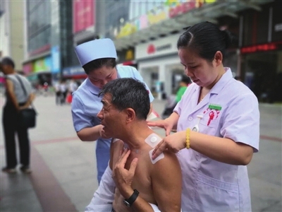“中医是国粹,能治本!我就相信中医!”在康复科咨询台前,市民卢女士边穴位贴敷边笑道。