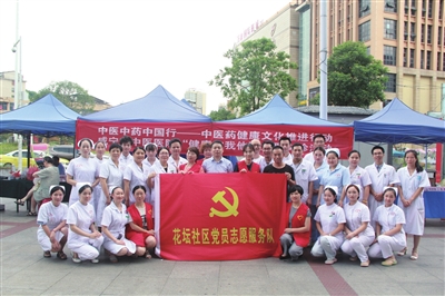 当日一早,市中医医院康复科、推拿科、老年病科、脑病科、儿科、肝病科、治未病科、肛肠科共16名专家在现场举行了大型义诊活动,为市民提供常见病、慢性病的中医诊疗和中医药健康指导、中医体质辨识、健康咨询等服务,同时还进行了穴位贴敷、针灸理疗、推拿按摩等体验活动,并发放中医药健康教育宣传资料、中药茶饮,开展了《中医药法》宣传、中医药政策咨询等活动,普及中医“治未病”理念、食疗药膳等养生保健知识,让市民切身体会中医药文化特色。花坛社区组织在职党员志愿服务队现场协助。