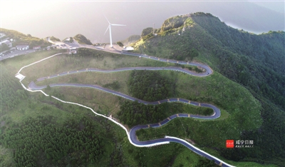 九宫山风景名胜区,是幕阜山生态旅游公路支线S209咸通线上的主要景点。山下35℃,山上23℃,12℃的温差,让前来避暑的人络绎不绝。盘旋而上的沥青公路,掩映在群山绿树之间,在航拍镜头下,别有一番韵味。