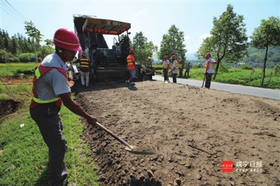 9月4日,虽已进入初秋时节,暑气却未消退,太阳仍然炙烤着大地,室外温度在35℃以上,行走在路上,不一会儿便会满头大汗。上午11时许,记者来到S358阳通线通洋镇寨下村时,前方一块醒目的指示牌提示着过往的行人和车辆,前方有施工。