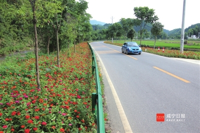 崇阳县S259省道铜天线,路边的绿化带上,独具匠心的养护工人撒下十几种花草种子。春暖花开时节,五颜六色的花苞迎风绽放,宛如车在路上走,人在画中游。