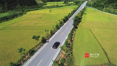 顺着老焦的手指方向,放眼望去,路边除了郁郁葱葱的绿化树之外,路旁的稻田里,稻谷已到了收割季,金灿灿的一片,颇有一番“稻花香里说丰年,听取蛙声一片”的意境。