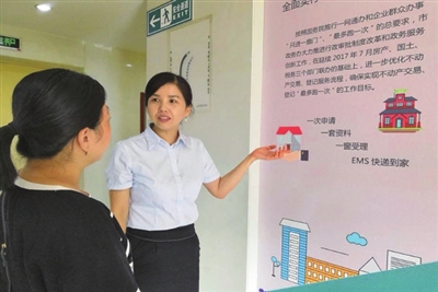 今年来,我市工商部门全面深入推进“放管服”改革,切实抓好“马上办、网上办、就近办、一次办”等审批服务,大大提高了行政审批效率和企业、群众办事便利度。并在全省率先实施“最多跑一次”改革,实现90%的事项网上办理,努力实现市民办事最多跑一次。同时,纵深推进“多证合一”改革,在实施企业“3证合一”、“5证合一”、“27证合一”的基础上,6月底全面实施“36证合一、一照一码”,大大方便了市民。