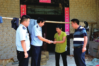本报讯(记者 方达星 特约记者 柯国强)“谢谢警察叔叔为我办户口,我也可以上学了!”9月14日,当通山县公安局驻燕厦乡理畈村精准扶贫工作组民警黄定华,将补办的户口本送上门时,4岁的小梦玲一边牵着爷爷手说道。在同一天,理畈村的其他四家贫困户家中5个孩子,都领到了盼望已久的户口本,彻底告别了“黑户”生涯。