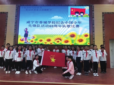 本报讯 (记者 熊大平 通讯员 徐卓) “我们是共产主义接班人,继承革命先辈的光荣传统……”10月9日下午,市香城学校小学部教室里队歌嘹亮,小学部学子开展主题建队日活动。