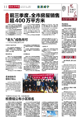 前三季度,全市房屋销售超400万平方米