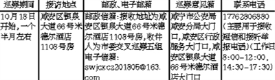 根据《中国共产党巡视工作条例》《湖北省实施细则<中国共产党巡视工作条例>办法》和中央、省委关于巡视巡察工作的新要求,按照市委巡察工作领导小组统一部署,市委交叉巡察五组将于2018年10月18日开始,用1个半月时间,对咸宁市公安局咸安分局开展巡察。巡察期间,巡察组将以“四个意识”为标杆,以党章党规党纪为尺子,以“五位一体”总体布局和“四个全面”战略布局为统领,重点发现党的领导弱化、党的建设缺失、全面从严治党不力,党的观念淡薄、组织涣散、纪律松弛,以及管党治党宽松软等问题。主要受理反映咸宁市公安局咸安分局领导班子及其成员和二级单位主要负责人,有关问题的来信来访,重点是关于违反政治纪律、组织纪律、廉洁纪律、群众纪律、工作纪律、生活纪律等方面的举报和反映。欢迎广大干部、群众按照巡察受理范围,直接向市委交叉巡察五组反映有关情况和问题,鼓励实名举报。