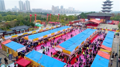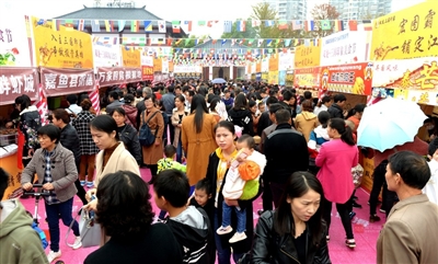 美食街分为农产品和食品展示区、本地特色美食展示区、外地美食展示区三大展区,吸引了大批当地市民和外地游客尝鲜。