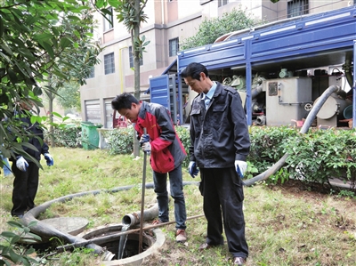 吸入粪液,排出有机原肥。日前,一台污染无害化处理车开入温泉中亨国际,对小区化粪池进行清污,将粪污变成有机肥料,变废为宝。