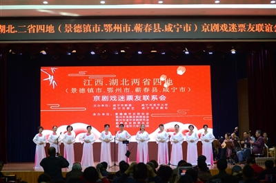 10月27日,江西景德镇市、湖北鄂州市、蕲春县及我市两省四地京剧票友齐聚市老年大学学术报告厅,开展为期两天的京剧戏迷票友联谊活动。