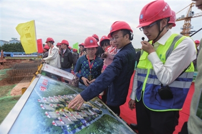 品鉴团成员先后参观了项目质量样板区和安全体验馆,并登上观景台鸟瞰现场全景,了解项目在打造“品质引领”、“精益建造”和“最美花园式工地”上的创新举措。