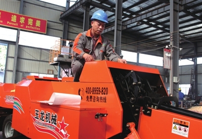 说干就干。许玉国拿出大半“身家”,从新加坡买回当时世界上最先进打捆机的图纸;又从中国农科院购进国内最先进的样机,进行拆解、分析,改造。夜以继日,他和工程师、技师、工人骨干“扎”在车间里,边生产、边改进。功夫不负有心人。2011年,公司研发生产的“九宫牌”YLYQ系列打捆机在全国各地的农机展销会上崭露头角,并受到业内认可。随后,许玉国一鼓作气,连续推出移动式方捆打捆机、破碎式打捆机、捡拾式方捆机等高端产品,均受市场欢迎。玉龙机械一跃成为全国农机行业的翘楚。