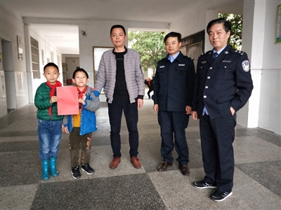 民警通过视频到辖区学校走访 ,最终找到了两个小学生,他们是赤壁蒲纺小学四年级的同班同学,分别叫王野、卢一帆。民警对两个小学生的行为给予肯定和赞扬,并为学校送去了感谢信。