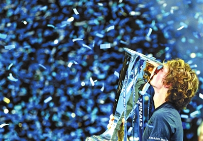 本报综合消息 北京时间昨日凌晨,“萨沙”小兹维列夫以6比4和6比3直落两盘击败德约科维奇,首次杀入ATP年终总决赛的决赛即夺冠。他不仅成为继1996年的贝克尔后首位夺得这项荣誉的德国球员,还以21岁零6个月的年纪,成为继2008年夺冠的德约科维奇后,最年轻的ATP年终总决赛冠军得主。