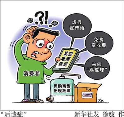 二是电商产品遭到线下维修点区别对待。多位消费者反映,在电商平台购买的商品,需要维修时,经常遇到平台客服将问题推给厂家,厂家又以产品是网上销售为由,将责任推给电商平台。这一线上不愿修、线下不愿管的现象,导致消费者权益受损。