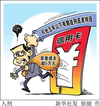 新华社消息 根据最高人民法院、最高人民检察院28日公布并将于12月1日起施行的司法解释,恶意透支信用卡,数额在5万元以上不满50万元的,将被认定为刑法规定的恶意透支信用卡“数额较大”,可判5年以下有期徒刑或者拘役。