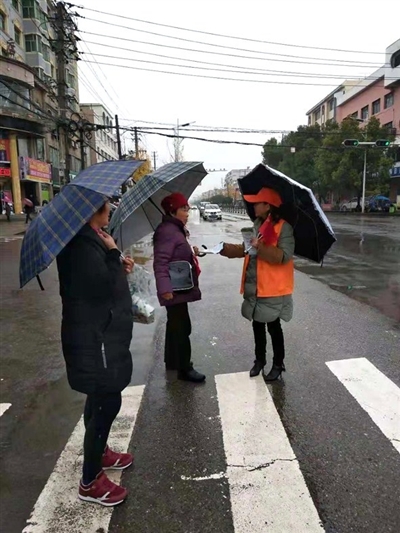 这是咸安区永安办事处文笔路社区在开展文明出行劝导活动,旨在进一步增强广大市民的文明出行意识,营造良好的公共交通环境。