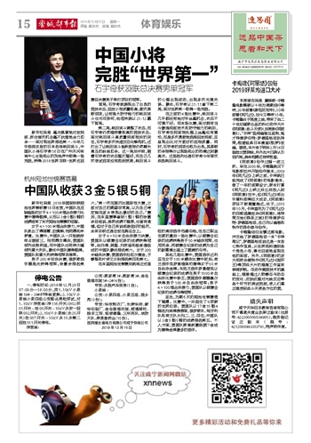 中国小将完胜“世界第一”