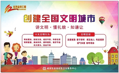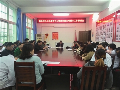 “我中心正在创建文明单位”“我知晓,我参与,我奉献”。贴在门前堂内的这些标语十分醒目。不仅如此,他们还通过党政工联席会、文明创建工作专题会、中心小组理论学习课堂、党组织生活会、职工培训班等时机,召开参与创建全国文明城市工作动员会、推进会,组织动员领导干部和广大职工认真学习上级关于创建全国文明城市的文件精神和工作要求;成立了以陈明亮主任为组长,副主任宋明、陈剑、杨晓娟、曾瑜灿为副组长,各科室、村站负责人为成员的专项工作领导小组,明确分工职责,实行“谁主管、谁负责”的原则,保障创建工作实行长效监督机制。加大宣传力度,着力营造宣传氛围,全面推进公益宣传。以社会主义核心价值观、遵德守礼、讲文明树新风、文明出行、未成年人思想道德教育、志愿服务内容为宣传主题,全面推进宣传工作。中心门诊大厅电子显示屏每天循环播放宣传标语和公益广告。各村卫生室、服务站利用宣传栏、发放宣传资料等形式进行宣传。结合开展居家养老、家庭医生签约、健康扶贫入户、老年人体检等形式,向居民发放宣传单。及时传递文明创建最新动态,不断提高干部职工创建工作的知晓率和参与率,为创建全国文明城市工作奠定坚实的思想基础;“优质提升年”等各项活动有条不紊地开展和进行,大力推行“人性化、感动化”服务,倡导“一新、二温馨、三勤、四个主动、五个一、六声”服务理念;制定《社区卫生服务人员道德规划》、《社区医务人员行为准则》,以全新的医护形象,给患者提供全新的诊疗环境和医疗操作。