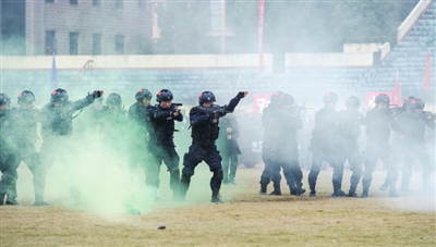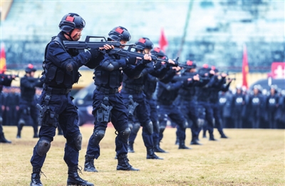 “一二三四、一二三四……”为进一步加强巡特警队伍建设,大力提升巡特警应急处突能力,切实提高协同作战水平。昨日,全市公安巡特警冬训大练兵在市体育中心举行,来自市局、温泉、咸安、通山、通城、崇阳、赤壁、嘉鱼的8支巡特警队伍练技能、练战术、练指挥、练协同、练保障。