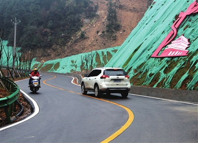 近日,南林桥镇石门村村民骑车经由通山石门生态旅游公路前往县城。