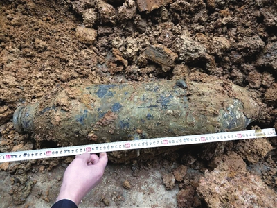 经出警民警初步勘察,这枚炸弹直径25厘米,长约70厘米,重达50公斤,疑似侵华日军遗留的未爆航空炸弹,虽然表面锈蚀,但弹体保存完好,如处置不当仍有爆炸的危险。