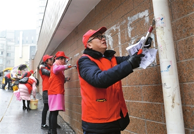 4日,市经信委、咸宁日报社、市农发行、市温泉中学等8家单位的志愿者,在咸安温泉办事处希望桥社区的瑞景佳园小区开展“牛皮癣”大清除,同时在中百、沃尔玛超市广场前发放宣传单,提高“创文”知晓率。全媒体记者 陈红菊 通讯员 刘丹/摄