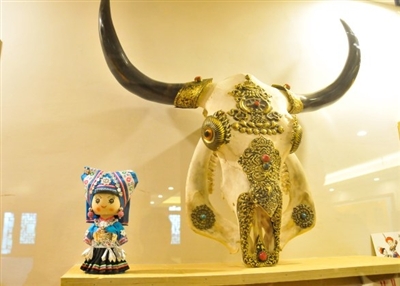传说,瑶族以前生活在穷山恶水中,玉帝知道后,派牛王下凡来耕田,自此,瑶族人民风调雨顺,五谷丰登。因此,牛崇拜也成为瑶族祭拜祖先、重视农耕和祈求丰产等文化的表现。铜鼓,被瑶族视为具有生命意义的乐器与神物,和牛头结合,形成了目前当地特有的文化图腾。
