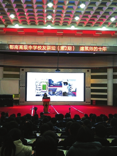 万静雅大学毕业之后,进入地产公司做建筑师。当天,万静雅以建筑师和优秀毕业生的双重身份与鄂高学子进行了一次近距离的互动。万静雅通过讲述亲身的经历、信心的传递、情感的交流、数据的分析,让学弟学妹们明白学习的目的、树立远大目标的意义、大学生活该如何度过,并勉励同学们要敢于想象,给自己树立远大的目标, 多读书、长见识,找到适合自己发展的方向并在自己所从事的领域尽可能做到最好,让未来的人生有更多可能性、有更多选择。