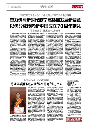 奋力谱写新时代咸宁高质量发展新篇章 以优异成绩向新中国成立70周年献礼