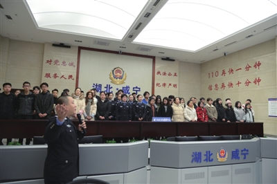 当天上午,市公安局组织50余名湖北科技学院、咸宁职业技术学院学生走进警营,相继参观了市局指挥中心、禁毒教育基地、特警支队、咸安区看守所。