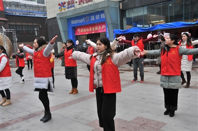本报讯(记者葛利利 毛亚轩 通讯员刘思扬 刘颖竹)“创建文明城市,青春与你同行……”昨日上午,伴着欢快地旋律,在城区沃尔玛广场、同惠广场、银泰百货和宏大市场门前,出现一群又唱又跳的“红马甲”,他们用活力四射的舞姿,向过往的市民宣传文明城市创建。