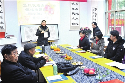 据了解,近年来,南昌路社区致力于推广国学文化,组织学习国学经典,得到居民热烈响应。去年12月,该社区国学经典教育推广中心修建完毕后,更多的居民加入到学习国学的队伍中,到这里诵读国学经典、习书法学国画。 (记者 毛亚轩)