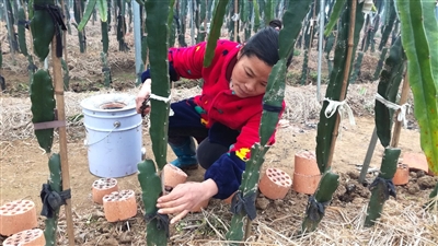 “这几天阴雨绵绵,大棚里的红心火龙果苗前些天受低温影响,感染病菌,长了铁锈斑,把我急坏了。多亏市委党校帮我请了市农科院的专家,才救活过来了,我真的是打心底感谢他们。”1月11日晌午,咸安区汀泗桥镇古田村7组,村民谭志云在村里的火龙果基地忙着检查棚里的煤是否燃完、外棚有没有扎紧,全然忘了吃饭。