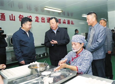 万咏动情地告诉记者,通山包坨能取得今天的一点成绩,除了全体员工的努力外,离不开市县各级政府职能部门的大力支持和帮助。比如,不懂化验,食药监部门的同志手把手为他们培训化验员,多次到厂指导工作。新厂扩建,市、县局专门派人来规划布局。市食品药品监督管理局局长王用新亲自组织召开“地方特色产品进超市对接会”,让包坨顺利入驻咸宁各大超市。还有通山县粮食局领导知道他们在做包坨,主动找上门来了解情况。两年以来,一直提供雪中送炭般的支持,万咏心生感激送一幅“借得粮政好风来,助我扬帆向沧海”锦旗,表达对县粮食局的感谢,也是对他们自己的激励。