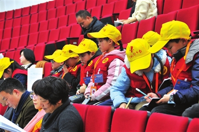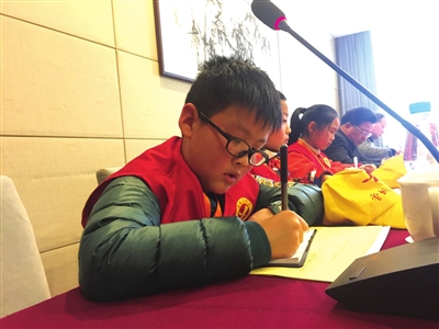 1月21日早上8时许,小记者们身穿红马甲、头戴小红帽、胸前佩戴小记者证、手捧采访本,满怀极大的热情走进市会议中心。他们稚嫩的脸上洋溢着自信的笑容,大家都为自己能参加“两会”采访而倍感骄傲和自豪。开幕式上,小记者们认真聆听《政府工作报告》,观察代表和委员认真审议、讨论《政府工作报告》。小记者们做好笔记,记录《政府工作报告》要点,俨然将自己当作参与“两会”的一份子融入其中。